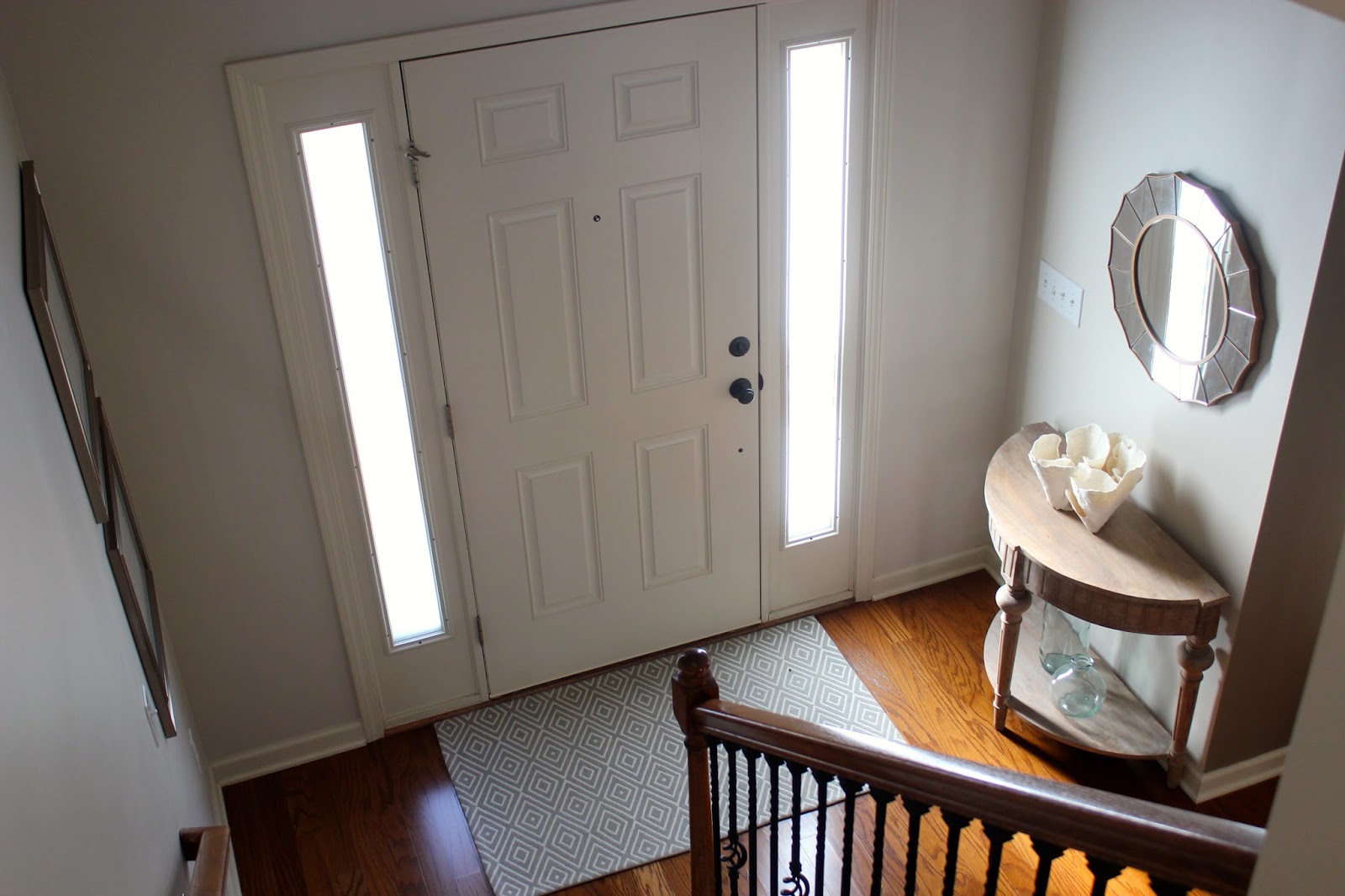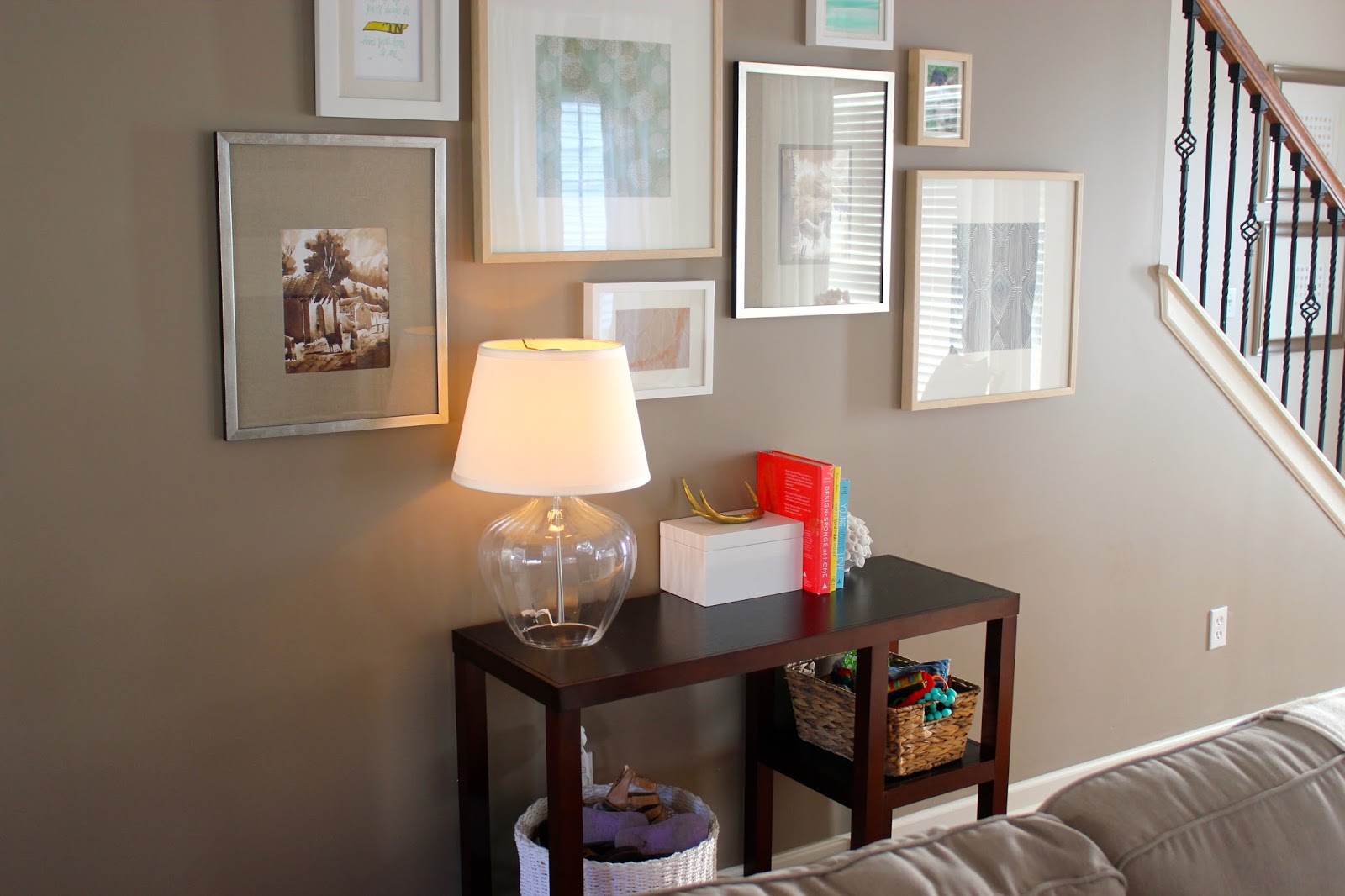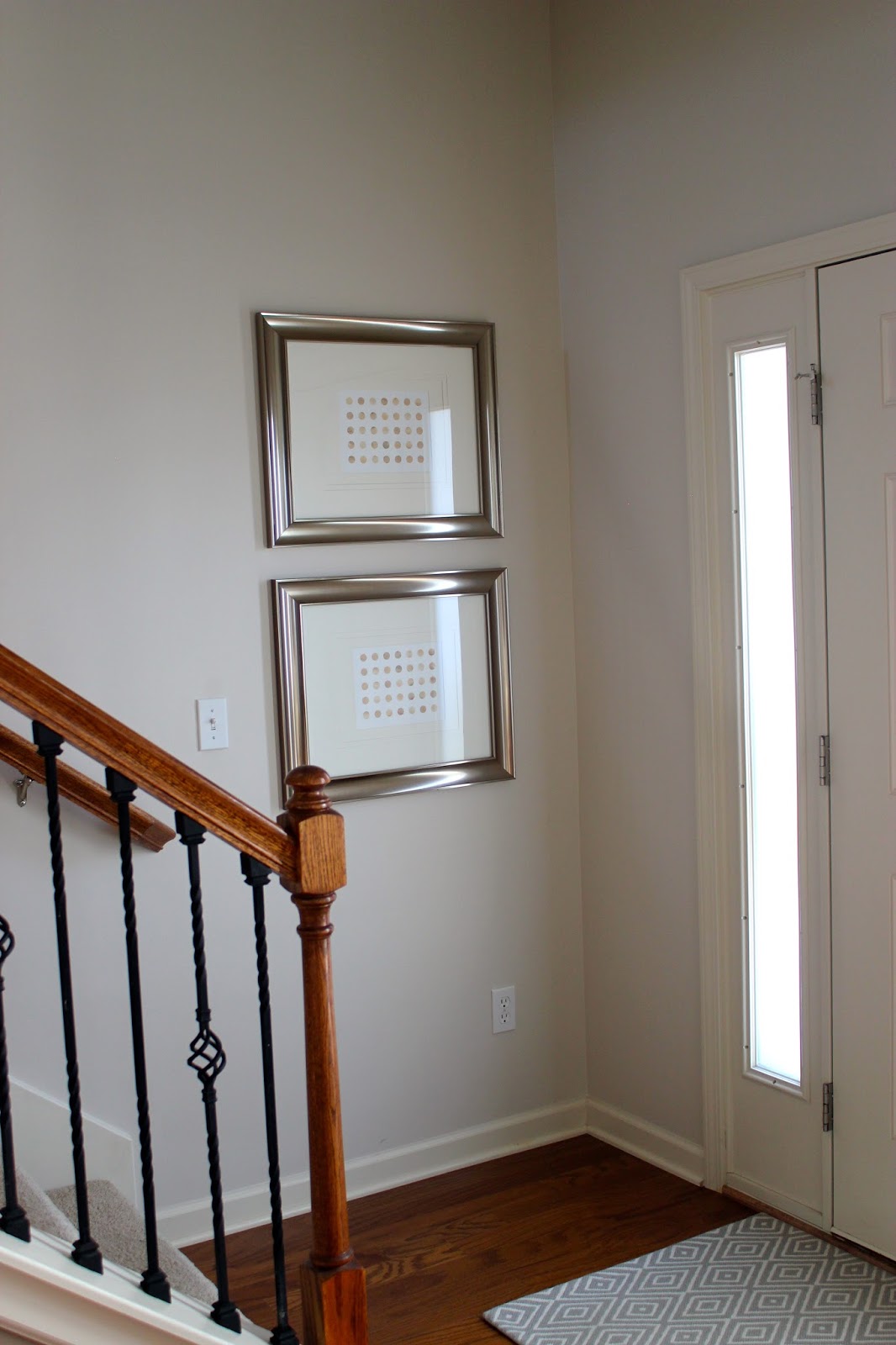 ^ These frames anchored the entry way, so I decided to keep them up. However, I switched out photos of my daughter with free printables that I found online.^