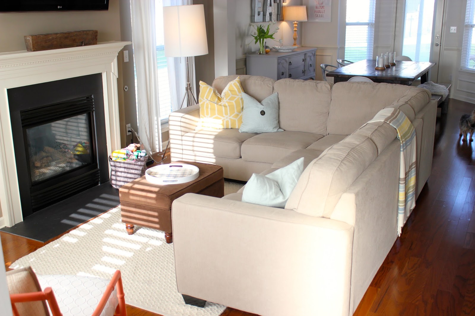 The way that your furniture is set up for your family may not create the best “flow” for potential buyers. Be sure and create defined spaces. For example… we have an open living floor plan. It was important for us to make it feel like there were three separate rooms in one large space. Dining room, kitchen and living room. We ended up moving our sectional sofa up to separate