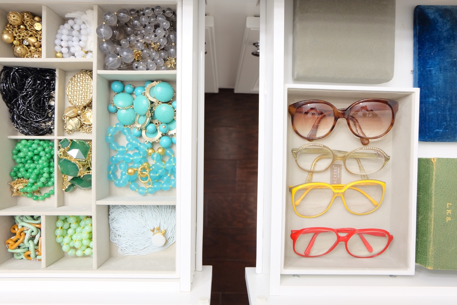 I love that they found my Nana’s old glasses and displayed them alongside all of my keepsake/antique jewelry.