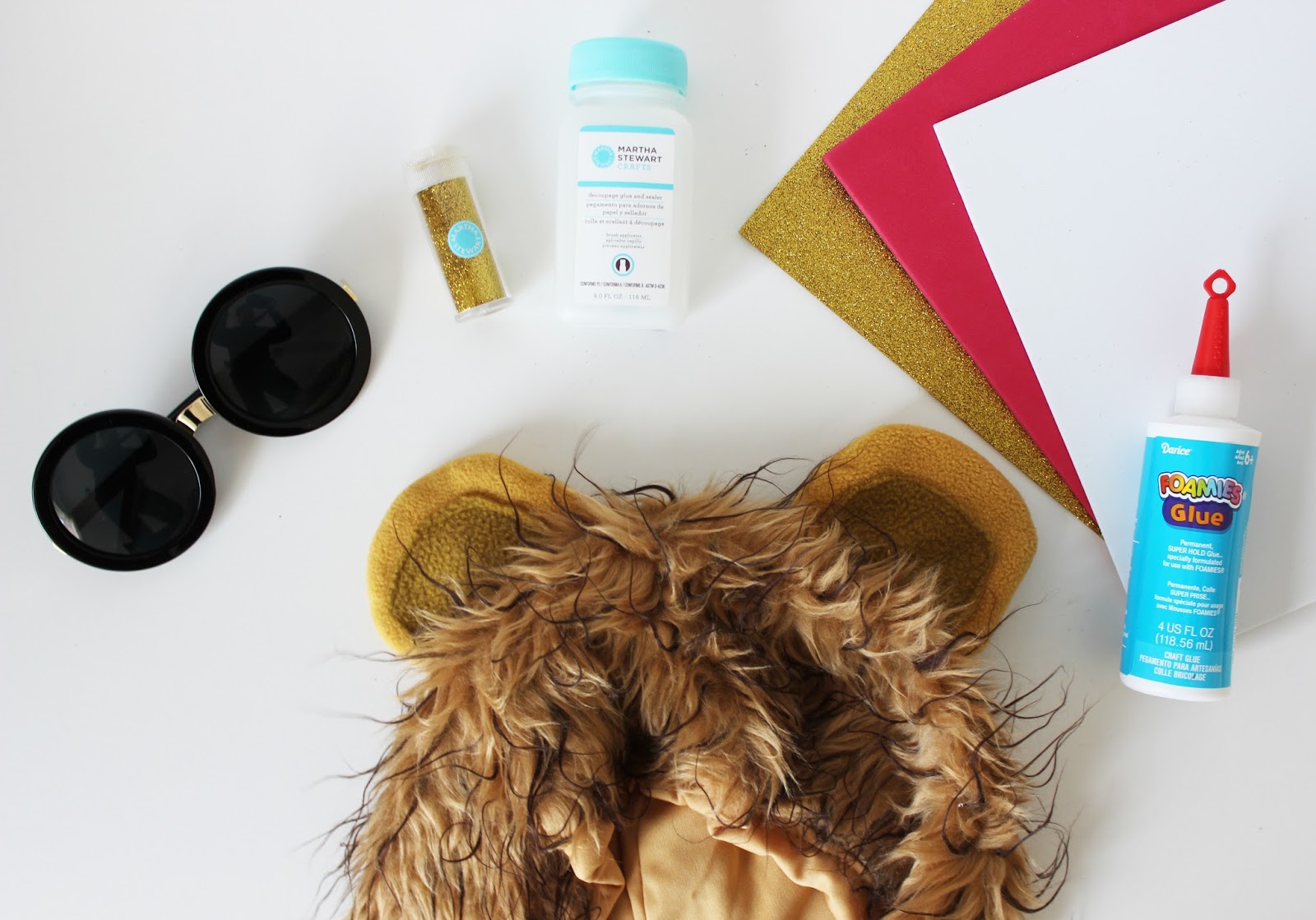 Naturally his Halloween costume would have to be a Beanie Boo. There are very few animal onesie costumes that don’t already have a face or eyes on them. This lion costume is from Party City- it’s actually the Cowardly Lion from Wizard of Oz with the badge snipped off. So that part was easy.