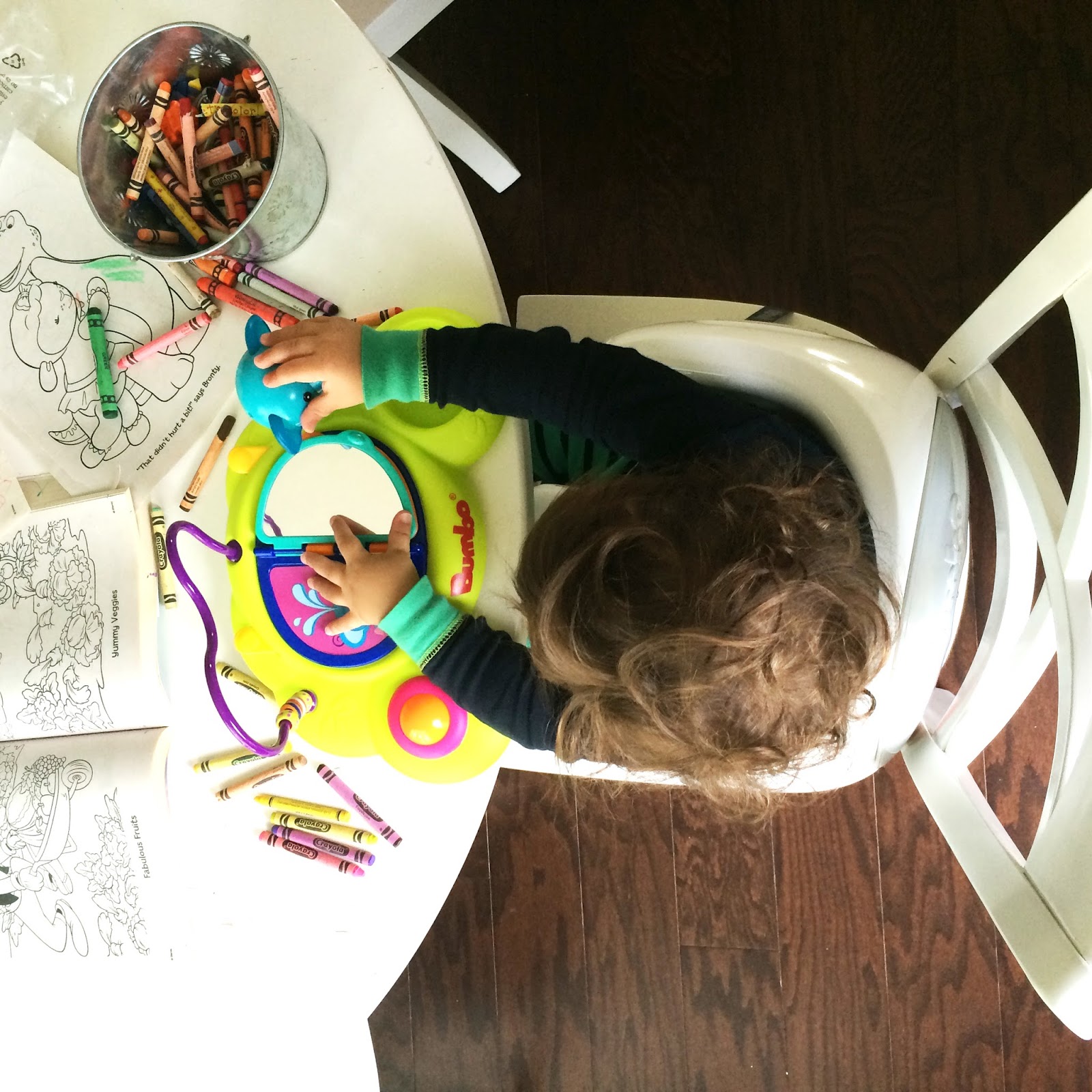 The Bumbo multi seat also comes with a play tray that suction cups to any surface. Such good distraction when this mama needs to drink her coffee in peace.